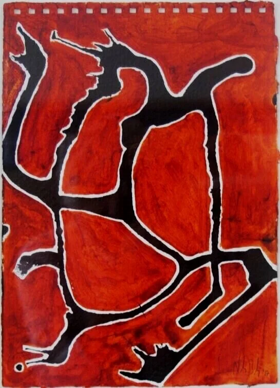 Rojo I, Tinta y acrílico sobre papel, 34cm x 44.5cm, 2017