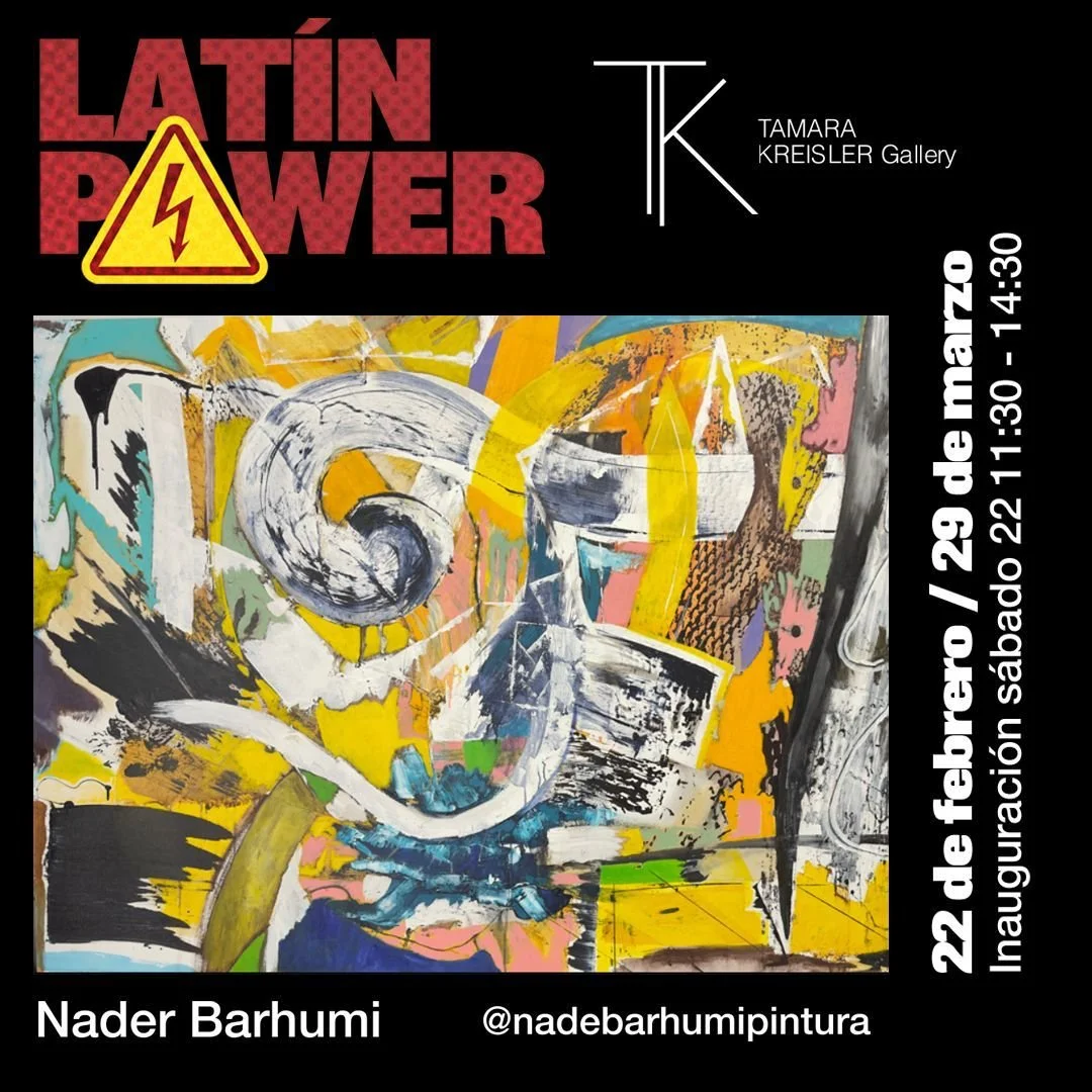 “En su pintura, Nader Barhumi combina distintas técnicas como la serigrafía, el óleo y el acrílico con una multiplicidad de recursos plásticos